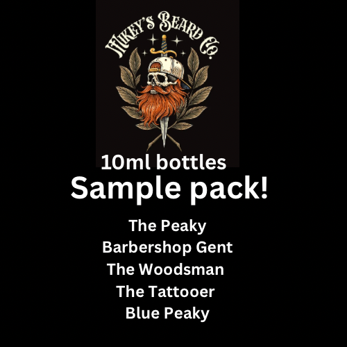 5 bottles, 10ml sized bottles containing our mainline beard oil products!